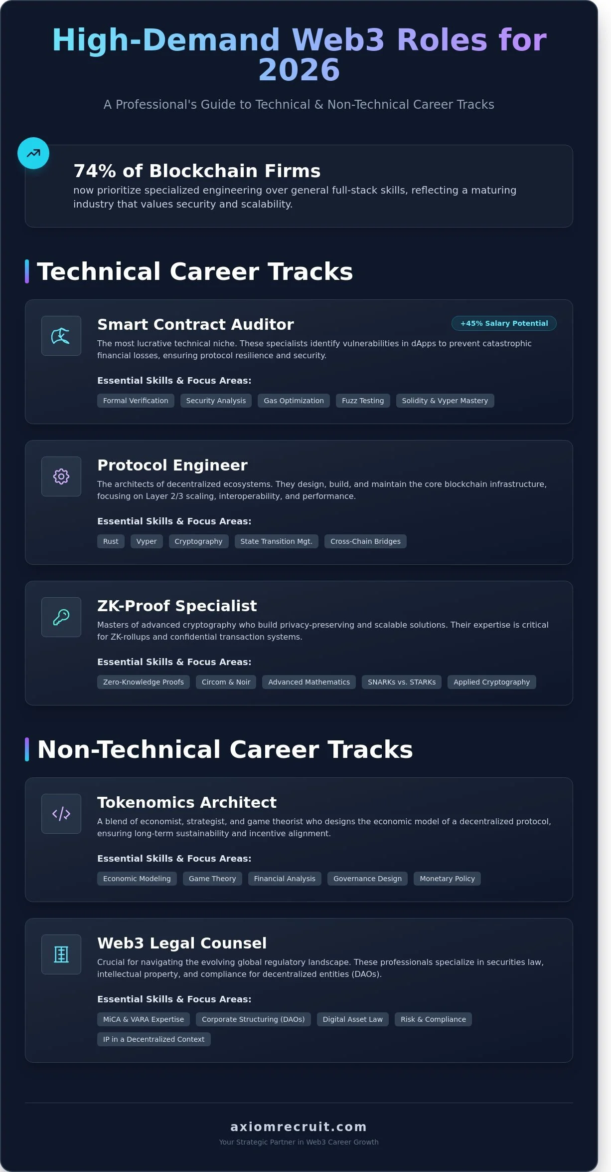 What if the most stable career move you could make in 2026 isn't found in a traditional corporate office, but within the decentralized layers of the blockchain? You've likely felt the weight of complex jargon and worried that market volatility might affect your long-term success in web3 careers. It's natural to feel uncertain about which ecosystem deserves your time when the digital landscape shifts every 12 months. At Axiom Recruit, we've found that 68% of tech professionals feel overwhelmed by this pace of change, yet they're eager for the flexibility these new roles provide.