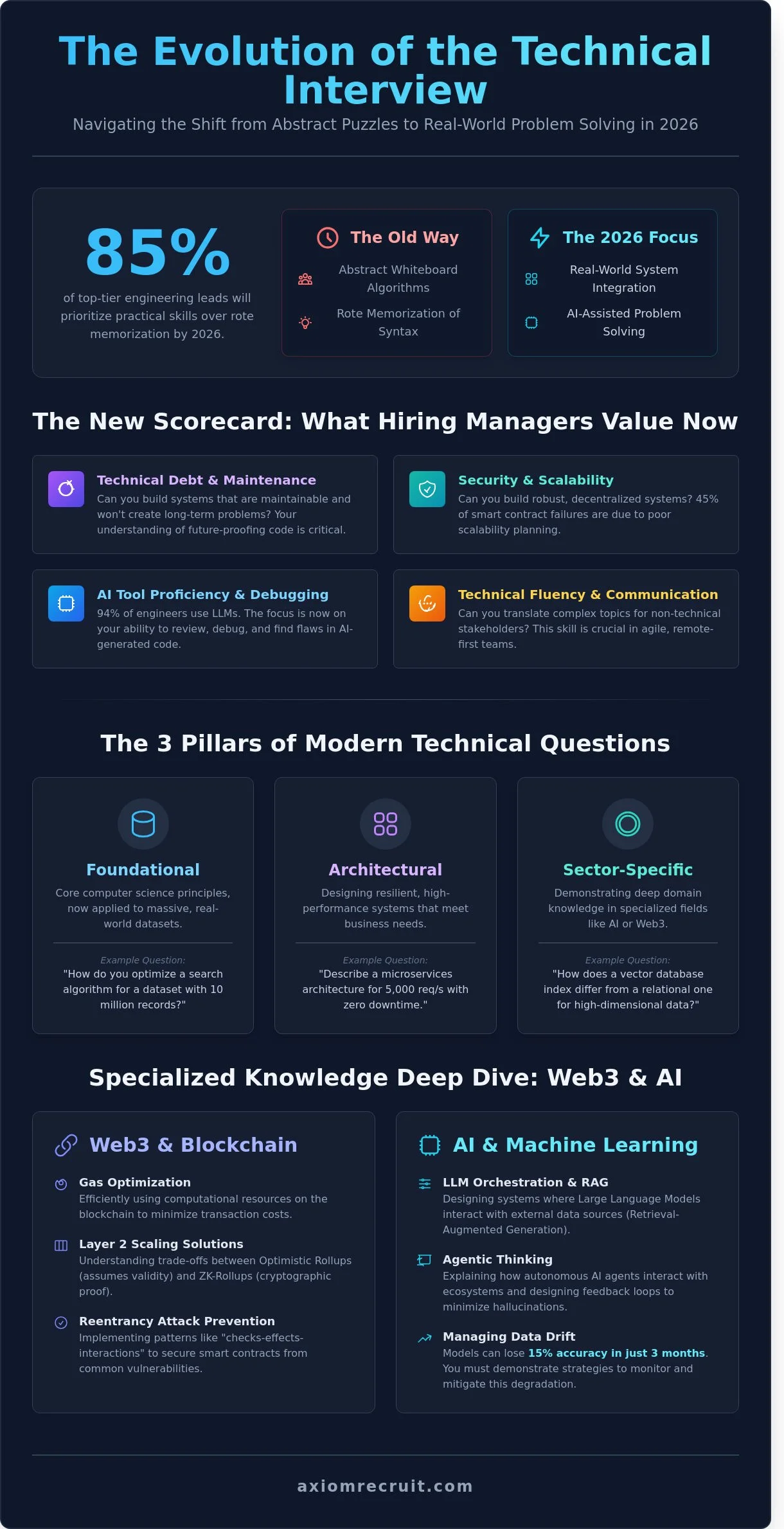 What if your ability to solve a binary search tree on a whiteboard matters less than how you prompt a generative model to debug a smart contract? By January 2026, 85% of engineering leads at top-tier firms have shifted their focus away from rote memorization. You likely feel that the traditional approach to technical interview questions no longer reflects the reality of your work in Web3 or AI. It's common to worry that your specialized experience might get lost during a generic coding test. We understand that frustration; your expertise deserves a platform that recognizes its value.